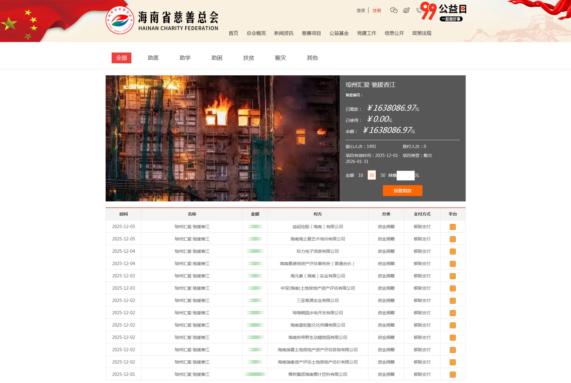 近日,香港大埔发生严重火灾事故,牵动了无数人的心。灾情发生后,海南省慈善总会迅速响应,发起“琼州汇爱·驰援香江”专项募捐活动,号召社会各界伸出援手,为受灾群众提供紧急援助。